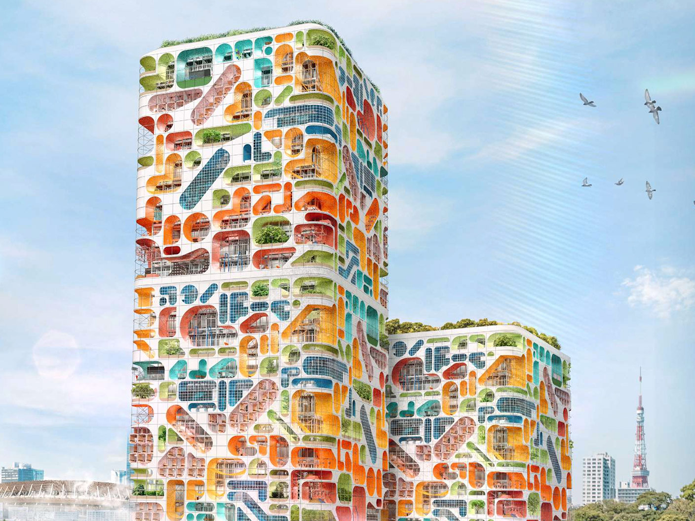 The Tokyo 2020 Olympics were postponed by a year due to the COVID-19 pandemic. In this context, an athlete’s village is designed to prevent viral spread and minimize impact on the athletes’ health. The whole building is made up of rapidly assembled structures. It is designed to be divided between living layers, an anti-epidemic stratum, and athletic training layers, so as to reduce crowd risk and maintain the necessary training facilities for the athletes themselves.