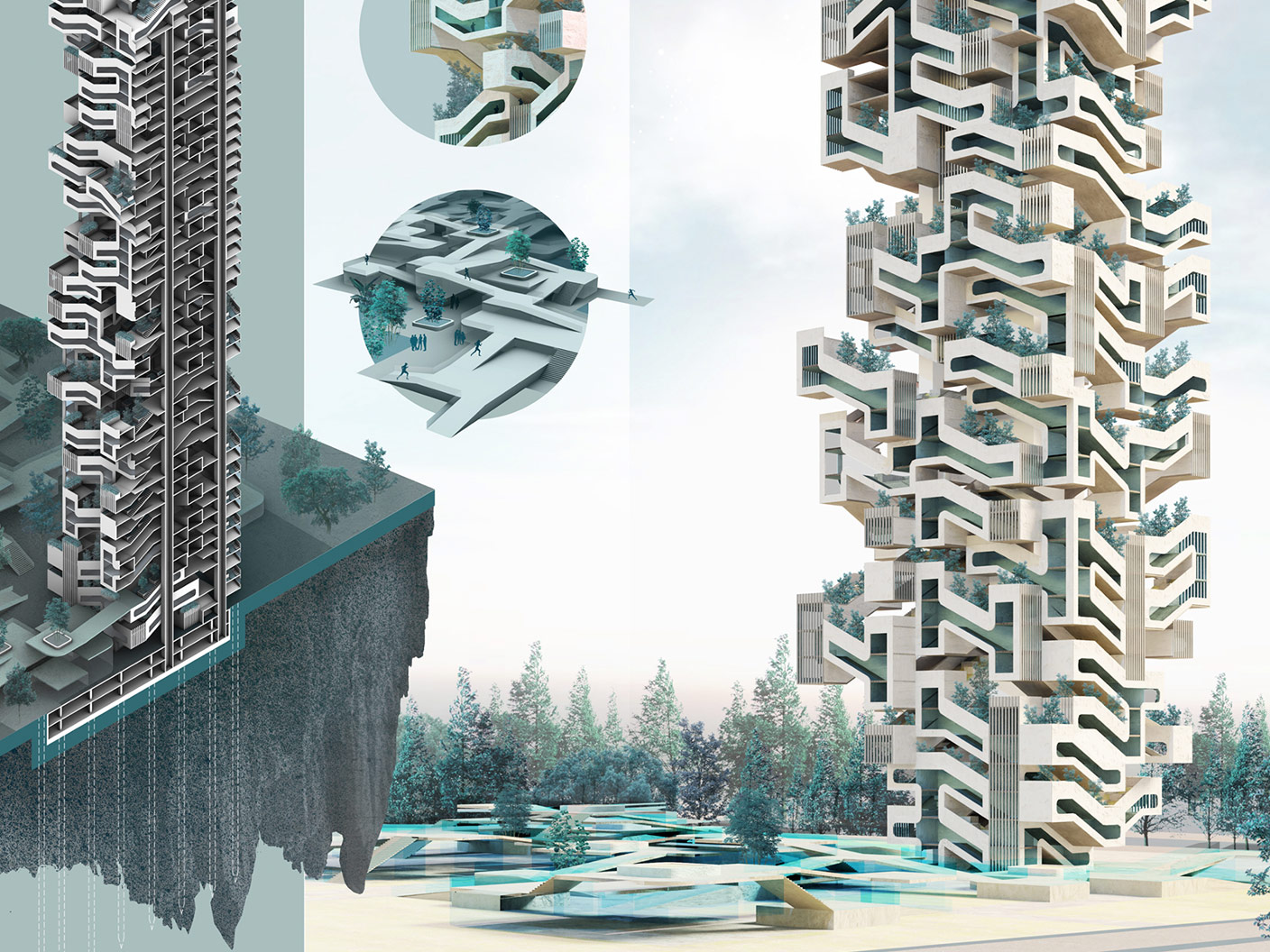 The 2021 International Student Tall Building Design Competition ran on the theme of "Future of Humanity", and culminated with virtual judging of the finalists, from which the jury determined the four winners.