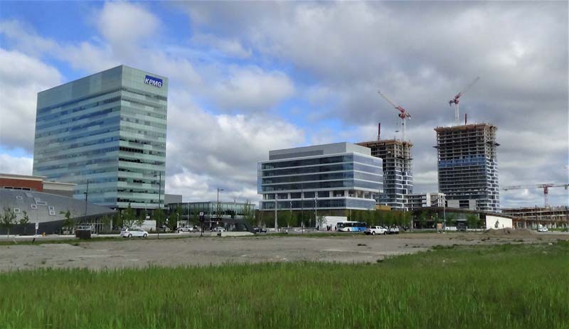 These condominiums are part of a 75-acre planned community called Assembly Park, with the first two buildings already beginning to define the VMC skyline. The first phase of the mixed-use Festival Condominiums project has made significant progress, and once completed, it will house 4,600 residents. The buildings will be connected by a podium and located next to a lively central plaza with restaurants, shops, a fitness facility, and other amenities.