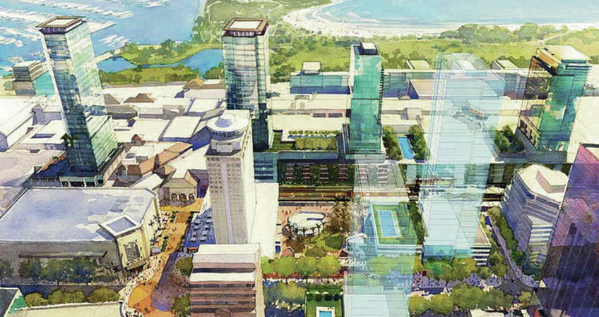 Under the proposal, an estimated five towers could be built on parking deck areas of the 50-acre (20-hectare) mall site mauka of Ala Moana Beach Park.