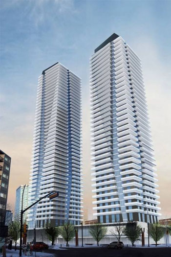 The project, by Langham Developments, will consist of a 37-story and a 43-story tower on 104 Street near 100 Avenue.