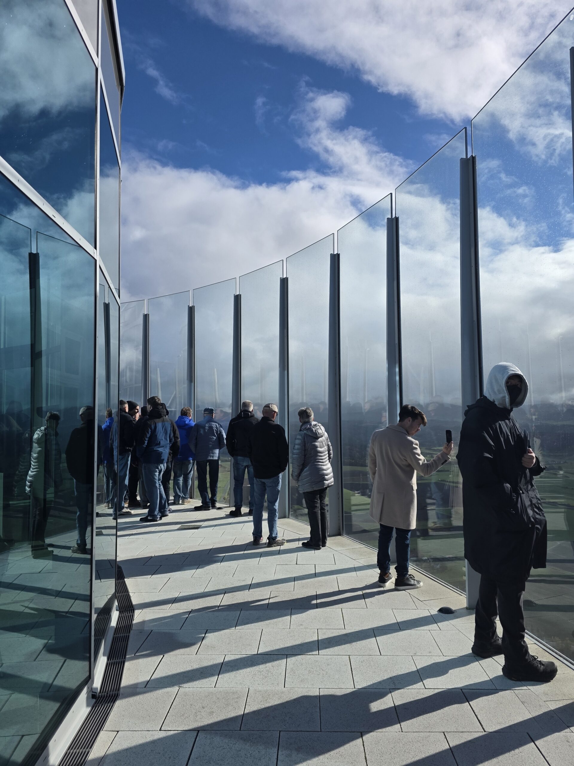 Students and professors visiting the observation deck of the TK Elevator Test Tower during the Fall 2025 international studio trip.