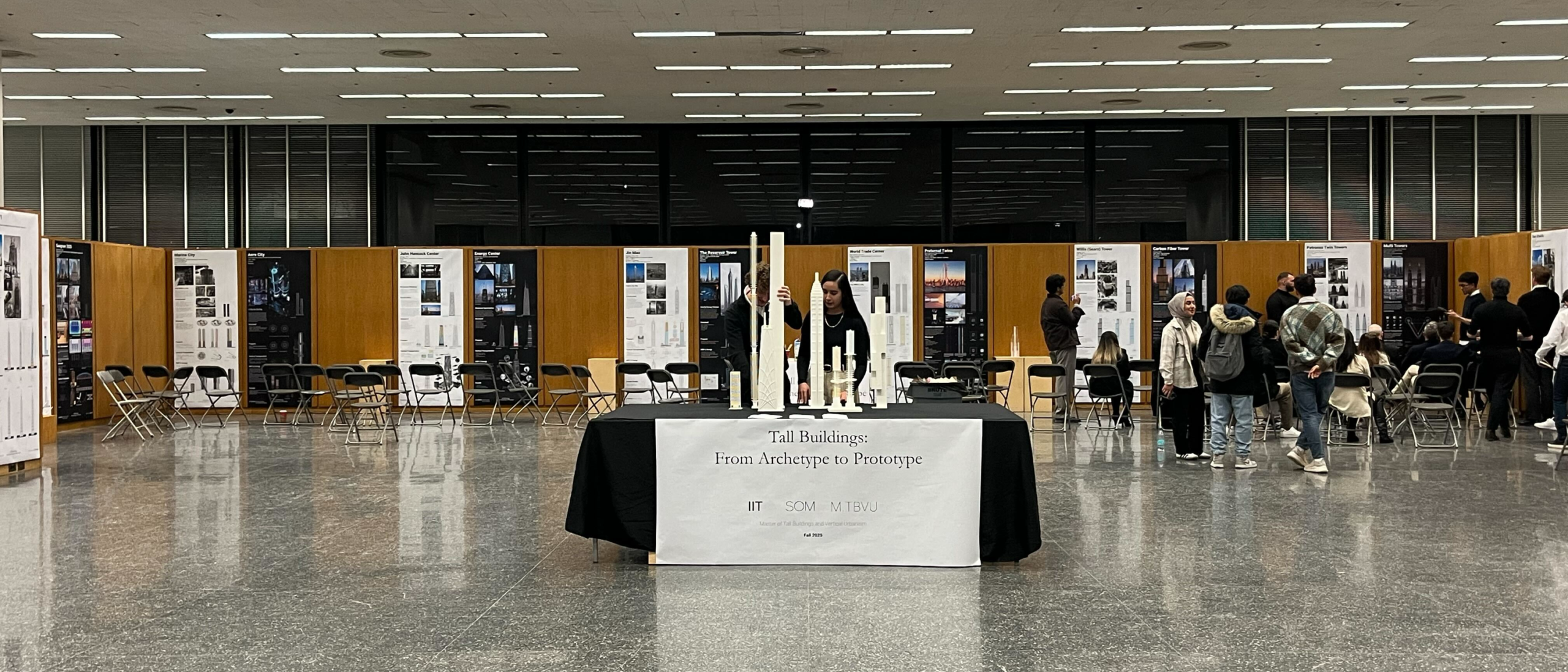 The Fall 2025 semester of the Masters of Tall Buildings and Vertical Urbanism (MTBVU) program brought together students, faculty, and industry professionals to explore ideas shaping the future of tall buildings. A central component of the semester was the SOM-led design studio, “Tall Buildings: From Archetype to Prototype,” where students examined how emerging technologies—such as artificial intelligence, robotic manufacturing, high-performance materials, and next-generation elevator systems—could influence the design of tall buildings.