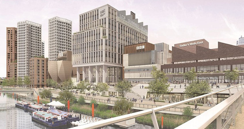 The Stratford Waterfront will be home to outposts for the BBC, the V&A and its new partnership with the Smithsonian Institution, a 550-seat theatre for dance company Sadler’s Wells and a new campus for the University of the Arts’ London College of Fashion.